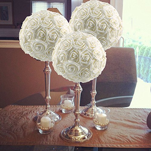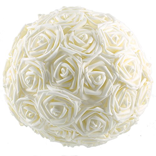 GTidea 50Pcs Bride Bouquet Real Touch Artificial Ivory Rose Heads DIY Wedding Table Centerpieces Arrangements Bridesmaid Flowers Home Party Church Corsages Decor