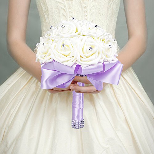 DIY your own unique wedding bouquet with the rose heads handle and rhinestone, crystal beaded, ribbon