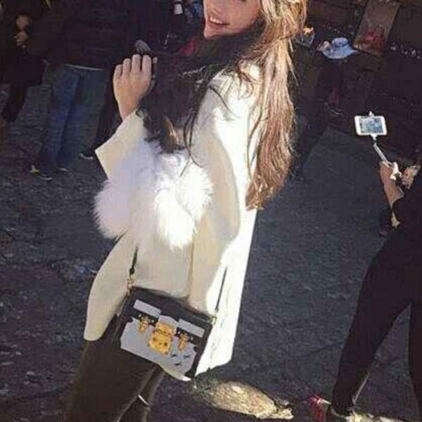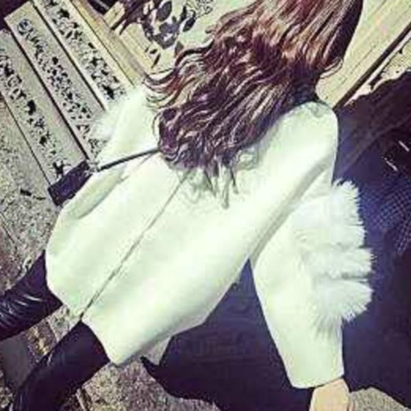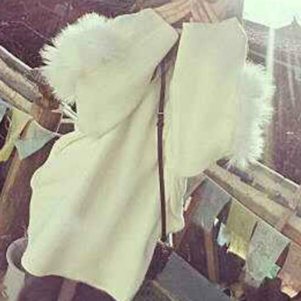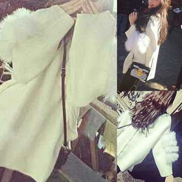 ゆったりシルエット ふわふわファースリーブ 長袖 ハイネック ニットセーター ホワイト