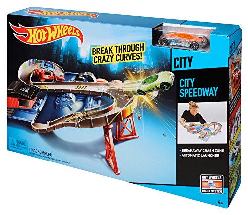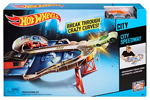 -. Binding : Toy -. Brand : Hot Wheels -. EAN : 0887961042399 -. Feature : Hot Wheels City Speedway has its high-speed ups and downs / Crazy uphill and downhill racing action / Show them all you have what it takes to crush the challengers! / Includes a launcher and traffic control gates / Comes with one Hot Wheels vehicle -. IsAdultProduct : 0 -. Label : Hot Wheels -. LegalDisclaimer : 4+ Warning small parts -. Manufacturer : Hot Wheels -. Model : CDJ34 -. MPN : CDJ34 -. NumberOfItems : 1 -. PackageQuantity : 1 -. PartNumber : CDJ34 -. ProductGroup : Toy -. ProductTypeName : TOYS_AND_GAMES -. Publisher : Hot Wheels -. Studio : Hot Wheels -. Title : Hot Wheels City Speedway Trackset -. UPC : 887961042399 -. Warranty : No Warranty
