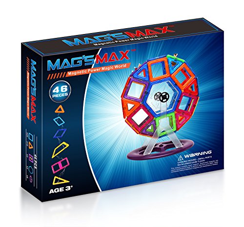 -. Feature : VARI ETY COLORS AND GEOMETRY SHAPES - 46 pieces set include 22 Squares, 12 Triangles, 2 Hexagons, 2 Kids in squares and ferris wheel kits, include a Model Booklet that guide kids to build different models that ensures continuously fun and sparking creative thinking / NO SAFETY WORRIES & BPA FREE - designed with high quality ABS plastic, BPA free, toxic free. Item is tested and approved for ages 3+, conform to CE, ASTM and EN71. Rounded edges with injured protect,5000 times falling-test approved magnet won't fall out to prevent Choking Hazard by contained small parts / MAGNET'S POWER AND MAGNETIC MAGIC - designed with Neodymium Rare-Earth Magnets which offer maximum magnetic power that allow your child to build the large structures with others shapes and enhance it with compatible accessories / INTELLIGENCE DEVELOPMENT & IMPROVE IMAGINATION - pretend play naturally provide opportunities for practicing different thinking skills, such as imitation, cause and effect, problem solving, symbolic thinking, others preschool abilities of building their own construction / STEM CONCEPT TRAINING AND EDUCATIONAL PLAY - colorful Geometric Shapes to help kids to improve Cognition, learning Basic Math and Science concepts, a capacity for Creative, Divergent thinking. Play group sessions encourage a child to test spatial relationships and mentally rotate objects in the mind's eye. Such practice might lead kids to develop superior spatial abilities
