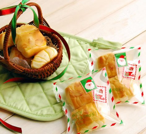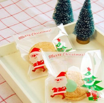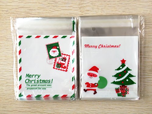 Yunko W0767 200pcs Happy Christmas Candy Cookie Packaging Self-adhesive Plastic Bags for Biscuits Cake Baking Package (C)