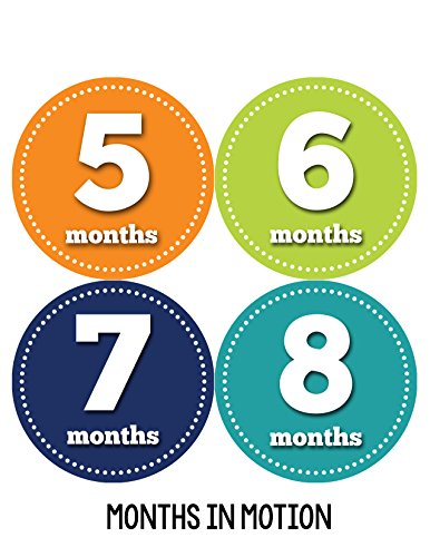 -. Binding : Baby Product -. Brand : Months In Motion -. Color : orange, green, navy -. Department : Baby-boys -. EAN : 0764130835580 -. Feature : Just peel, stick, and take a photo to document your baby's first year! / Makes a wonderful shower gift! / The perfect baby photo prop! / P.R.Inted on white matte sticker so no glare in photos / Includes 12 precut stickers that are approximately 3.93 inch diameter -. IsAdultProduct : 0 -. Label : Months In Motion -. LegalDisclaimer : Stickers are to be used under adult supervision only. Do not leave stickers on baby unattended. -. Manufacturer : Months In Motion -. Model : 059 -. MPN : 059 -. PackageQuantity : 12 -. PartNumber : 059 -. ProductGroup : Baby Product -. ProductTypeName : BABY_PRODUCT -. Publisher : Months In Motion -. Studio : Months In Motion -. Title : Months in Motion 059 Monthly Baby Stickers Baby Boy Milestone Age Sticker Photo -. UPC : 764130835580