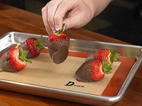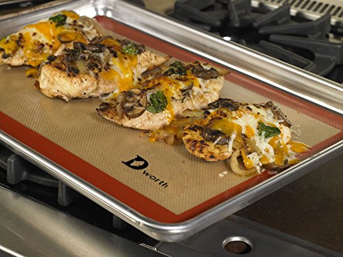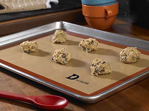 - Dworth baking mat provide consistent heat distribution and promotes even baking and browning, it won't move around when you're using it to roll or measure dough, and your goodies will never end up stuck to it.