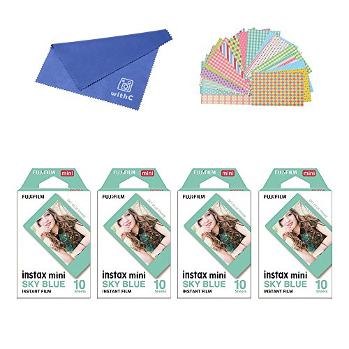 Fujifilm Instax Mini Instant Film SKY BLUE FRAME 4-PACK BUNDLE SET , Film SKY BLUE Frame ( 10 x 4 ) + Original Cleaning Cloth + Stickers 20 pcs. for Mini 90 8 70 7s 50s 25 300 Camera SP-1 Printer