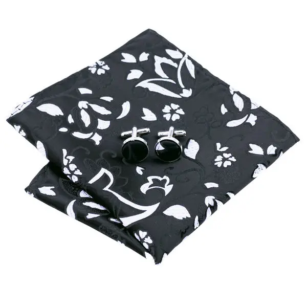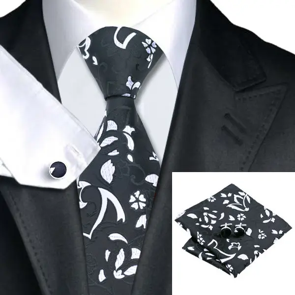LS-1106 남성 넥타이 브랜드 블랙 참신 100% 실크 자카드 짠 Gravata 넥타이 손수건 커프스 세트 정장 웨딩 파티 비즈니스