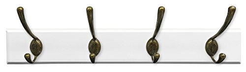 Headbourne 8017E 18" White Hook Rail / Coat Rack with 4 Antique Bronze Double Hooks