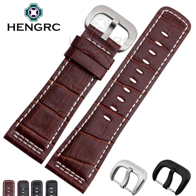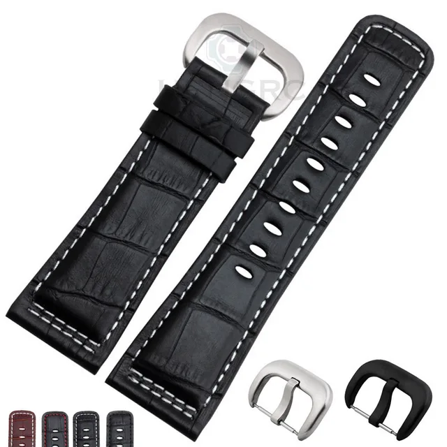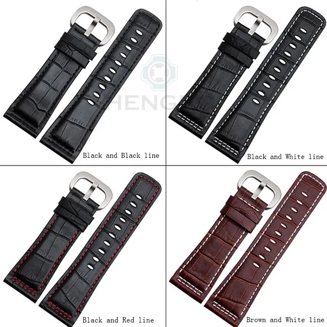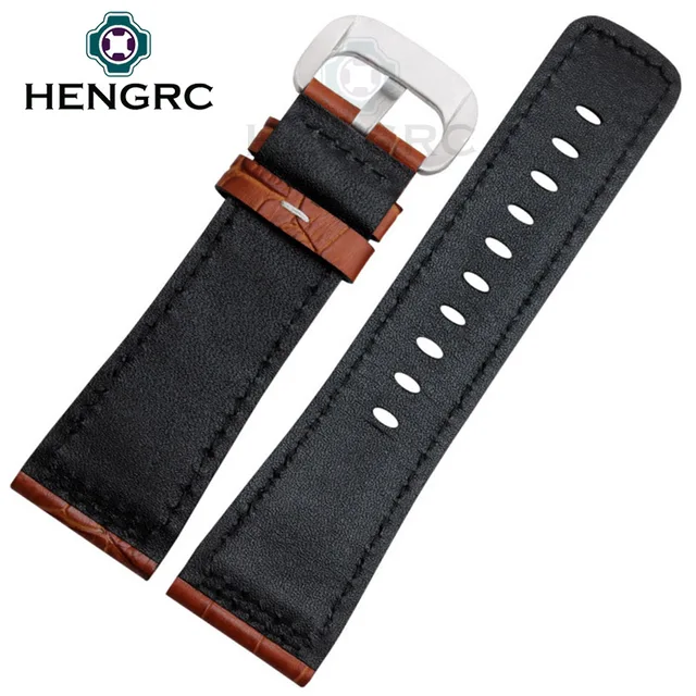 | [해외] 28 미리메터 시계 밴드 스트랩 정품 가죽 높은 품질의 블랙 브라운 남성 시계 줄 벨트 스테인레스 스틸 실버 블랙 버클 |