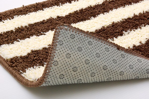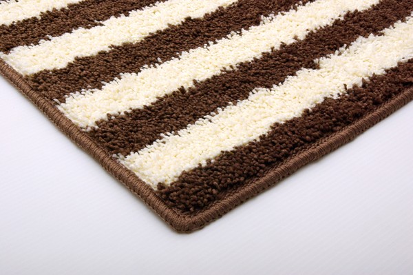 防炎糸を使用したシンプルなボーダー柄のマットです。表面は毛足が長くふわふわとした踏み心地です。裏面にはすべりにくい加工を施しています。ご家庭の洗濯機で洗えるのでお手入れも簡単です。(洗濯の際はネットをご使用ください)