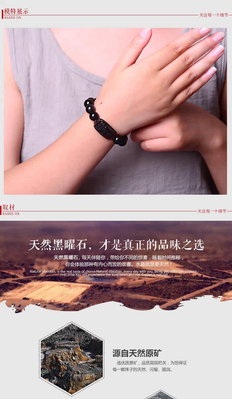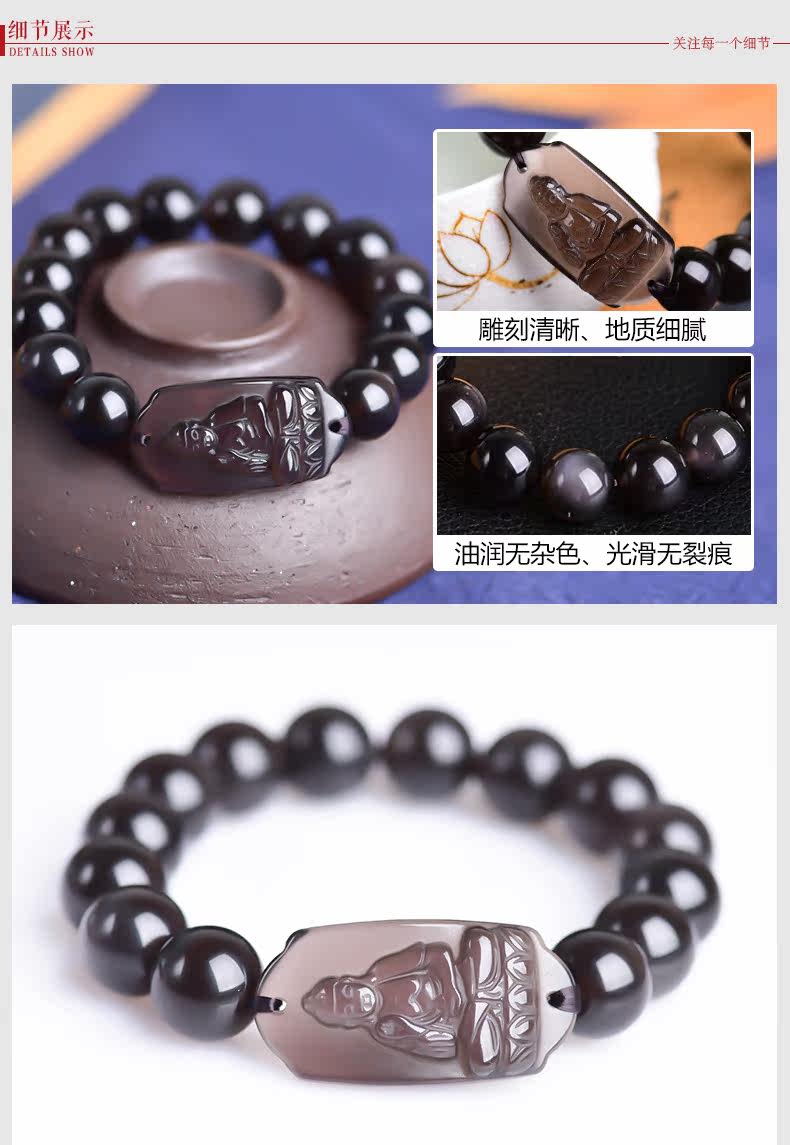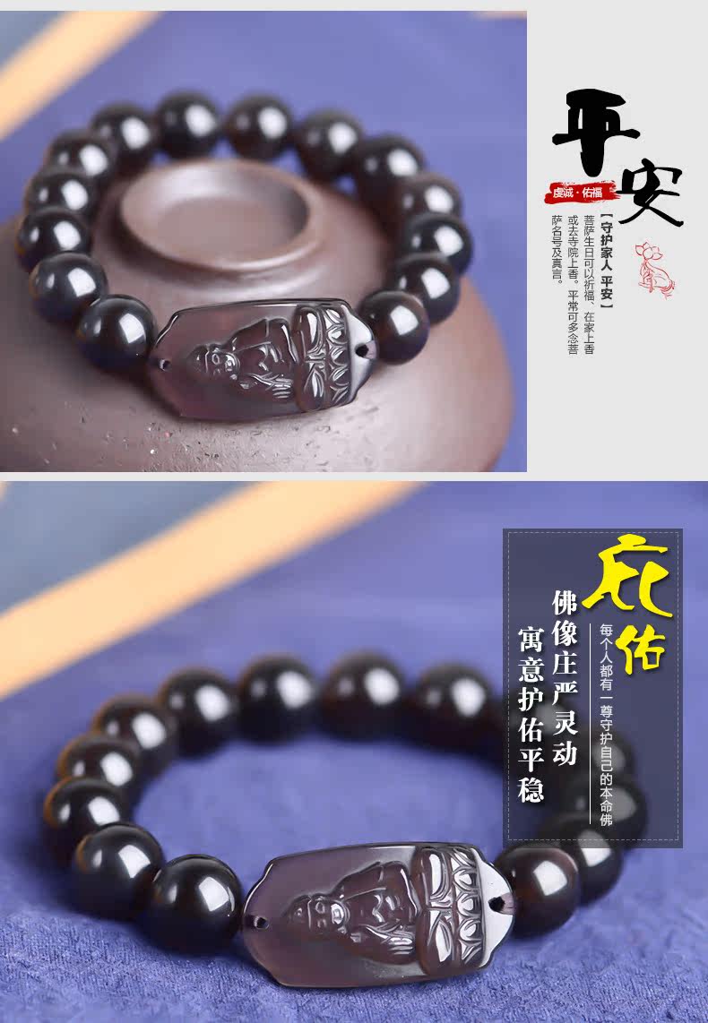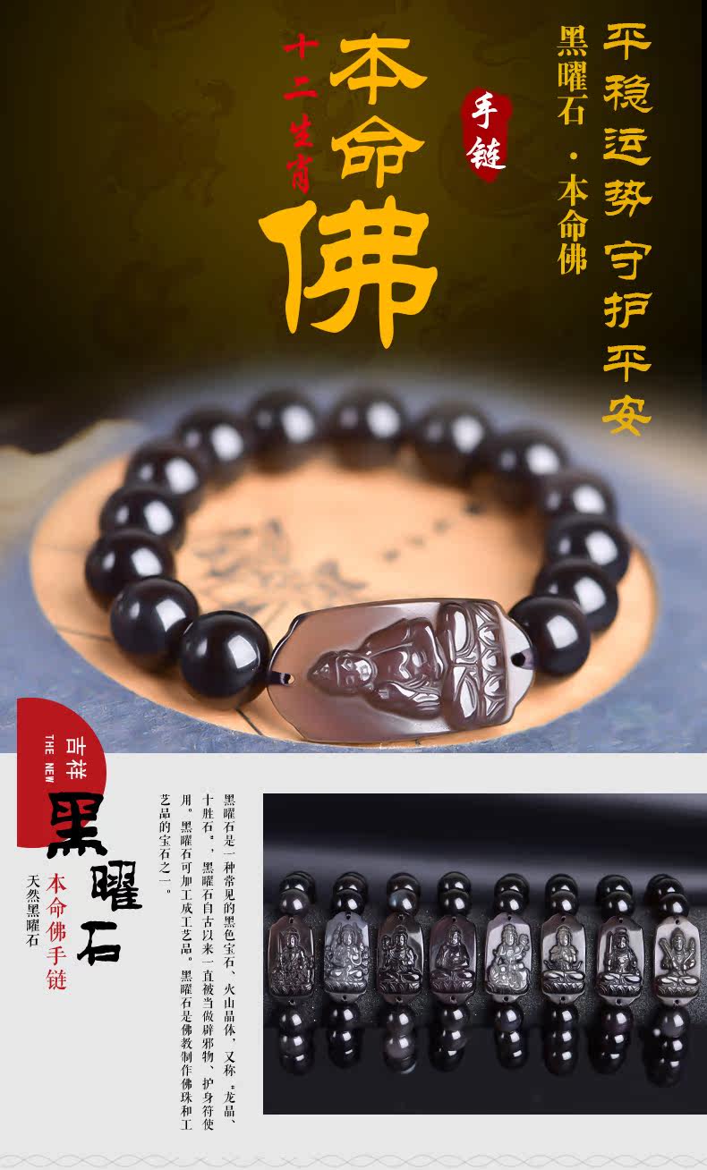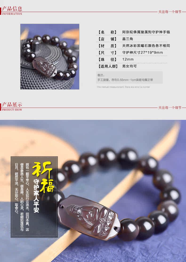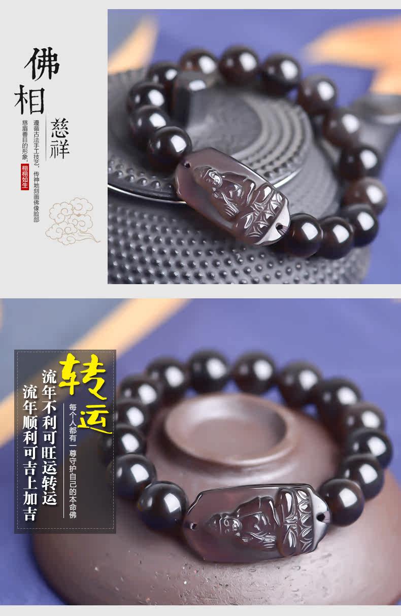 开光天然冰种黑曜石本命佛阿弥陀佛菩萨手链生肖狗猪守护神男女款