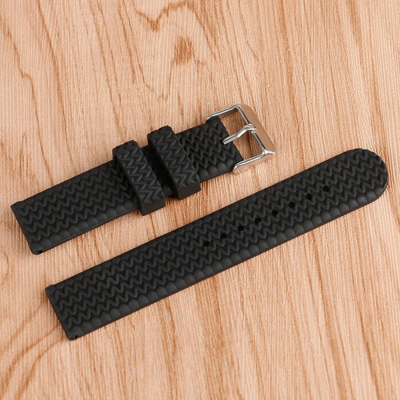 | [해외]16/18/20/22/24 미리메터 블랙 실리콘 시계 밴드 방수 고무 타이어 링크 핀 버클 남성 군사 손목 스트랩 교체 |