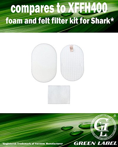 For Shark Foam and Felt Filter Kit for Rocket Powerhead Vacuum Cleaners (compares to XFFH400). Fits to: AH400, AH400C, AH401, AH401C, AH405 AH452, AH452W, AH454, AH454Q. Genuine Green Label Product.