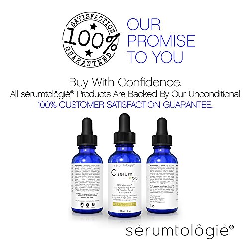 OUR PROMISE TO YOU - Buy With Confidence. And All serumtologie Products Are Backed By An Unconditional 100 percent GUARANTEE. Our 22 percent concentration of bio-active Vitamin C serum provides an unparalleled amount of photo-aging protection against the sun's harmful rays, or ultraviolet radiation. A high dose of botanically-derived Hyaluronic Acid (5 percent) will dramatically boosts the skin's hydration levels and help to maintain elasticity and overall firmness within the skin.