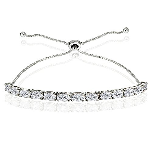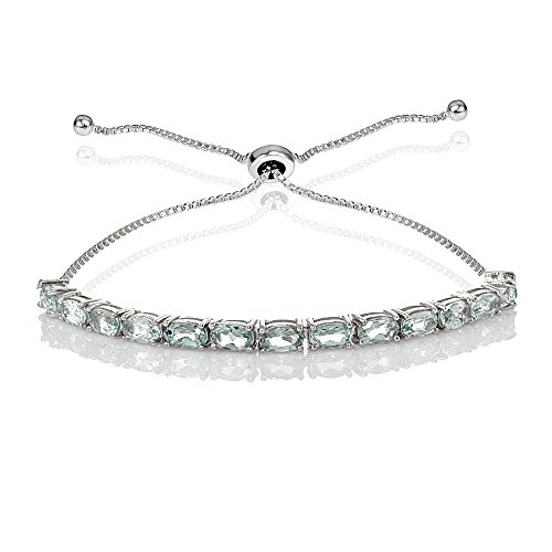 This attractive bracelet for women and girls showcases a prong set of 5x3mm oval genuine or created gemstones and chain which adjusts to fit your wrist. The bracelet is crafted of sterling silver and is nickel & tarnish free. It adjusts from 3-inches up to 10-inches long.