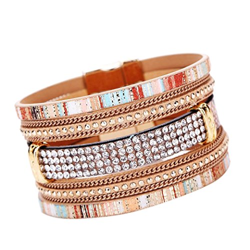 -. Binding : Apparel -. Brand : welcomeuni 1340 -. Color : Beige -. Feature : 100% brand new and high quality / Material: PU Leather ;Length: Approx. 20*3.8cm/7.87*1.5 inch / Easy to match with diverse apparel ;Suitable for all kinds of occasions / Superior synthetic leather material made / Exquisite craftsmanship, chic appearance ;Adjustable rope, fit for most girls and boys -. Label : welcomeuni-1340 -. Manufacturer : welcomeuni-1340 -. PackageQuantity : 1 -. ProductGroup : Apparel -. ProductTypeName : ABIS_APPAREL -. Publisher : welcomeuni-1340 -. Studio : welcomeuni-1340 -. Title : Welcomeuni Women Bohemian Bracelet Woven Braided Handmade Wrap Cuff Magnetic Clasp