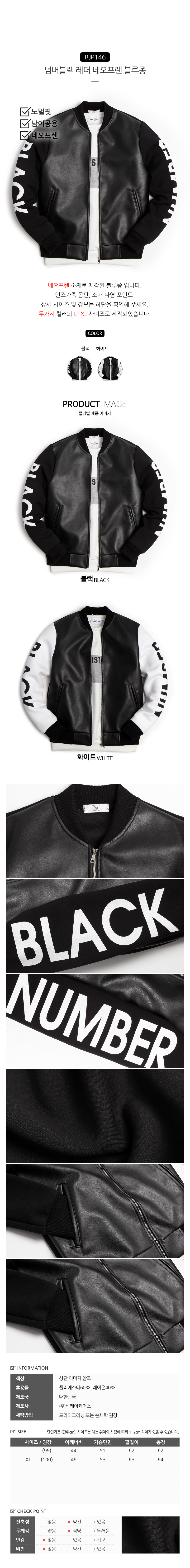 [Moniz] Number black Leather neoprene blouson BJP146