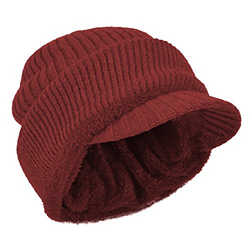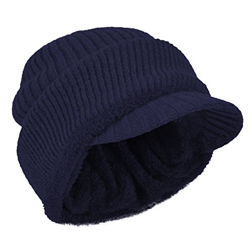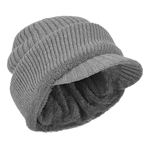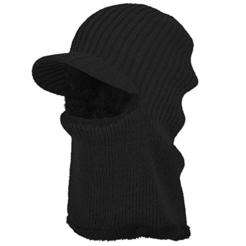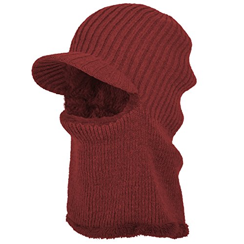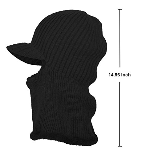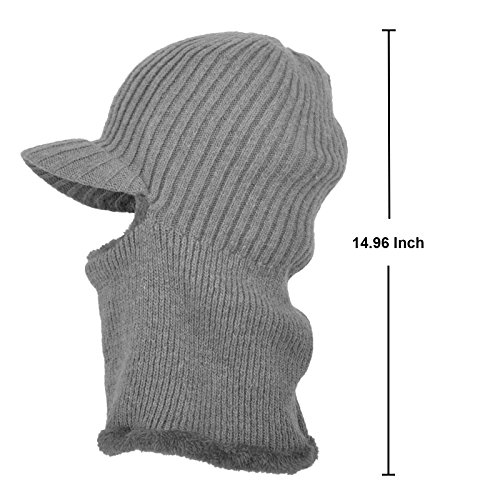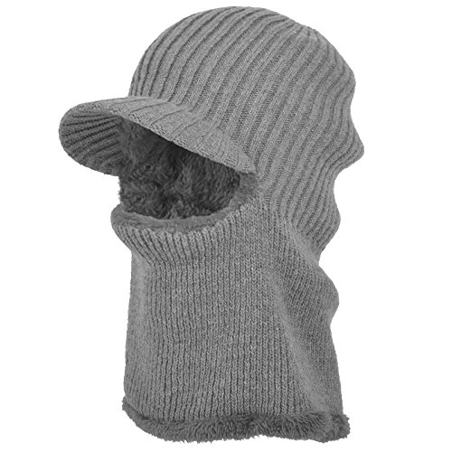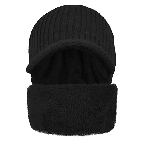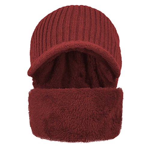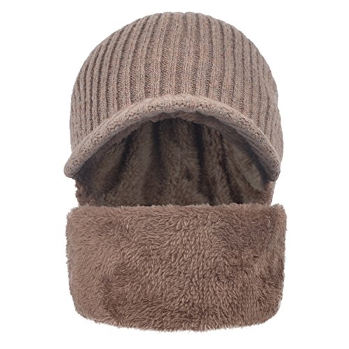 JaneyRubbins Winter Outdoor Solid Knit Visor Beanie Hat With Neckerchief Fleece Lined Knit Cap