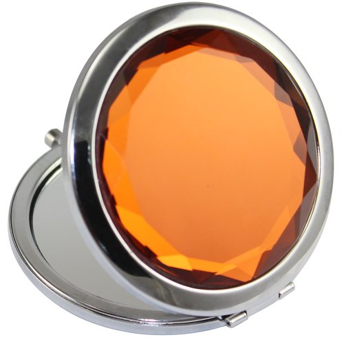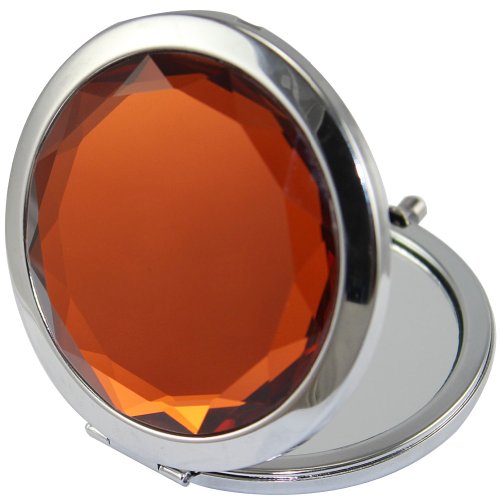 KOLIGHT Double Sides (One is Normal,Another is Magnifying)Portable Foldable Pocket Metal Makeup Compact Mirror Woman Cosmetic Mirror (Brown)