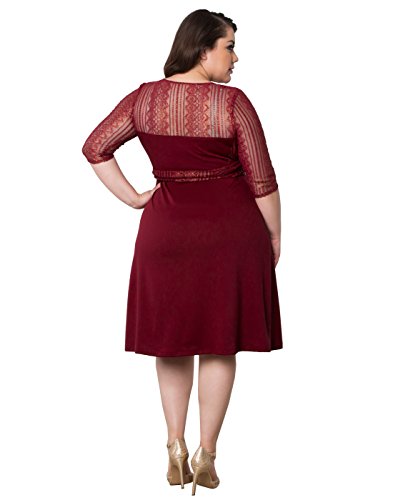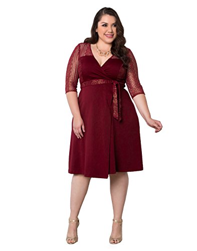 Wrap your curves up in style with our Ravishing Lace Wrap Dress. This classic fully functional wrap silhouette flatters your shape and allows for that perfect fit. Metallic lace on the sleeves, yoke and sash gives a nice contrast to the solid ponte for an easy and fashionable look. Self Lace: 98% Polyester, 2% Spandex; Teal Ponte - 89% Polyester, 7% Rayon, 4% Spandex; Burgundy Ponte - 83% Polyester, 14% Rayon, 3% Spandex. We recommend hand washing in cold water separately and lay flat to dry. Do not dry clean, use Oxiclean or iron the lace. No bleach. Made with love in the U.S.A.Feature
