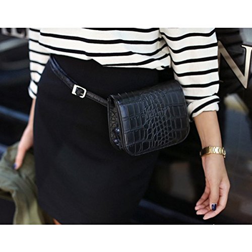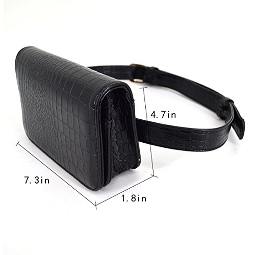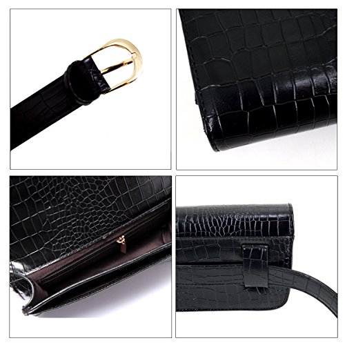 Made of high-quality PU leather and polyeste lined; glossy to look, easy to clean and durable to use. Crocodile pattern fanny pack looks so fashionable, stylish and creatives, dresses up you full of personality. Multipurpose, can be used as handbag, clutch, fanny pack, or shoulder bag as your pleasure. Smart but spacious, can store your phone, sunglasses, cosmetics, coins and changes. Adjustable waist belt fits most waist. Great gifts for women. Perfect for daily, shopping, sport, beach, travel, concerts, barbecues, festivals.