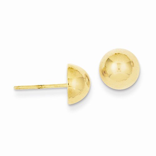 14k Yellow Gold Polished 8mm Half Ball Post Earrings (8mm x 8mm)