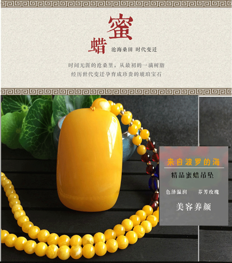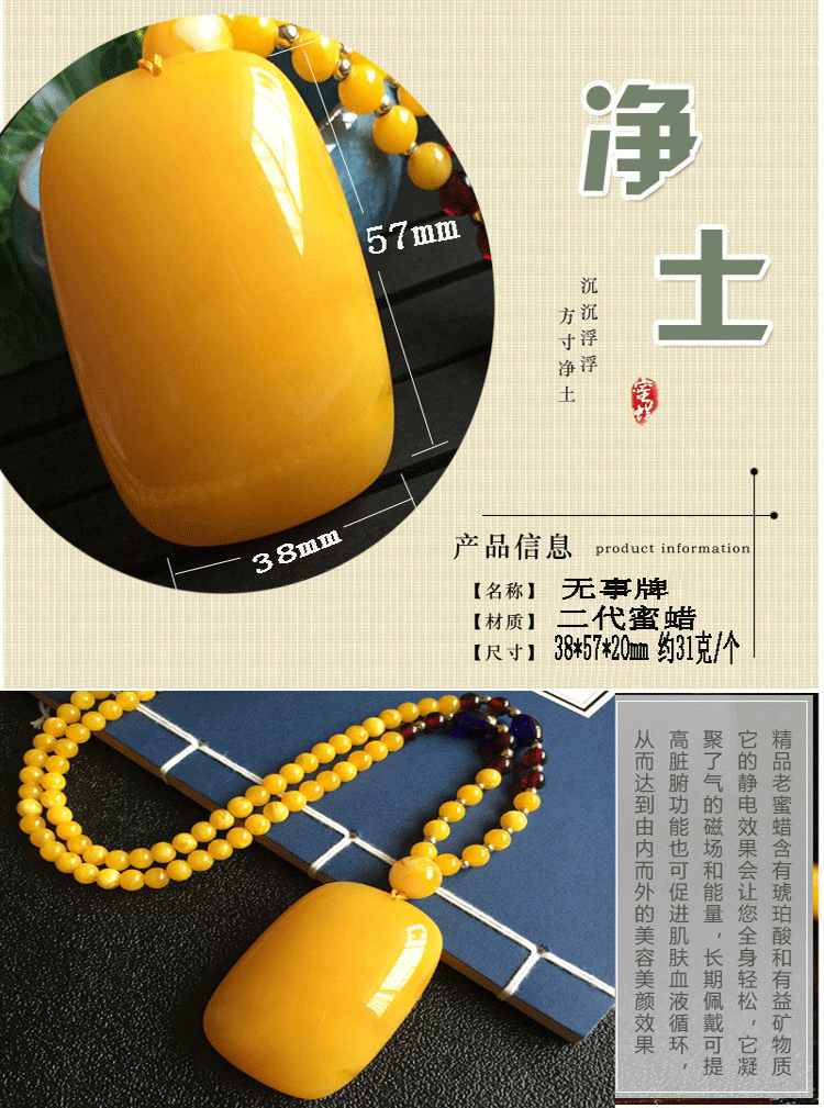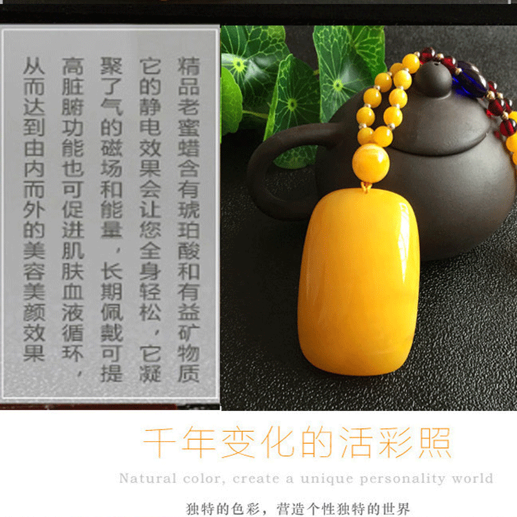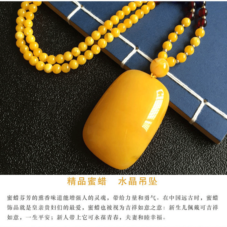 蜜蜡项链老蜜蜡无事牌吊坠毛衣链长款琥珀项链男女款鸡油黄