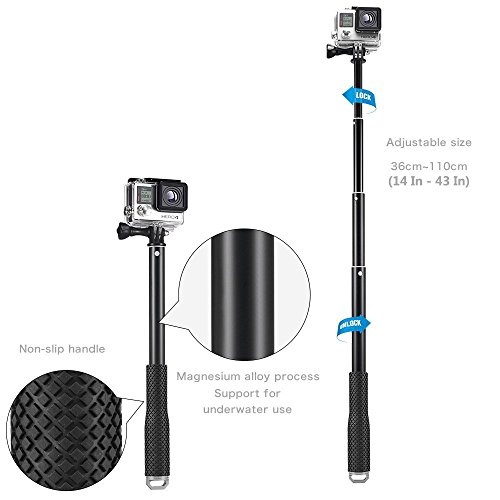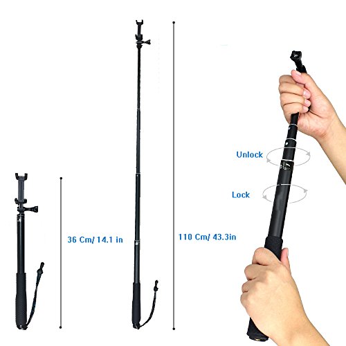 Telescoping Selfie Stick 10 in 1 with Tripod Stand Pole Extendable Handheld Cameras Selfie Stick for GoPro screw thread Session Cameras 5/4/3+/3/2/1/Session, 14-43 Inch Cell Phones Aooking Tech