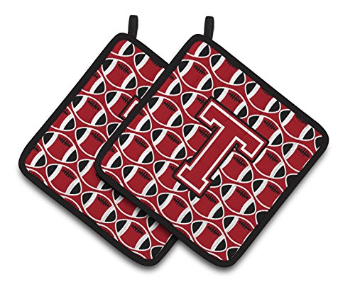Caroline's Treasures Letter T Football Red, black & White Pair of Pot Holders CJ1073-TPTHD, 7.5HX7.5W, Multicolor