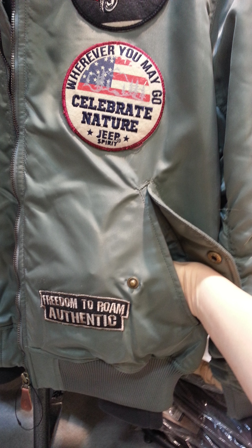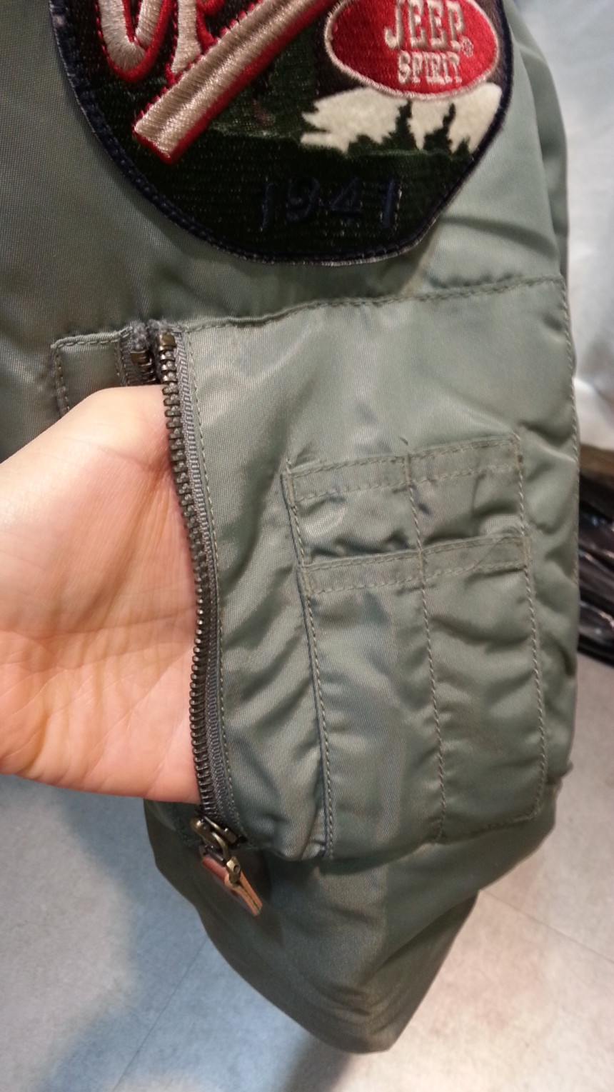 팔부분 와펜 디테일과 주머니 상세 컷입니다,,
