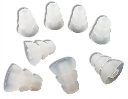 Three layer conical silicone earbuds for non-toxic, smooth, dirt resistant. Soft flanges offer a better fit in the ear canal with a tighter seal and better attenuation for decreasing noise.