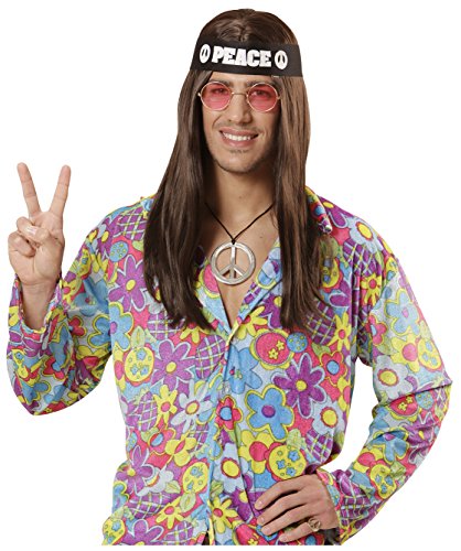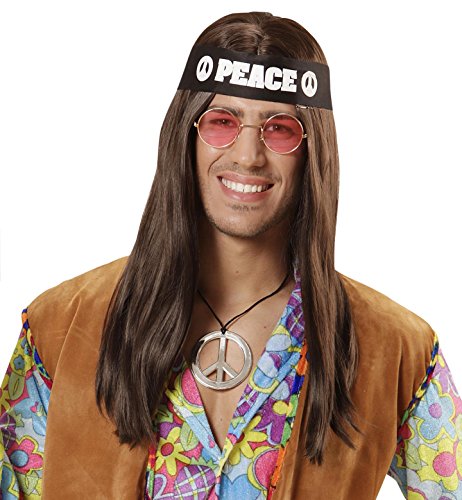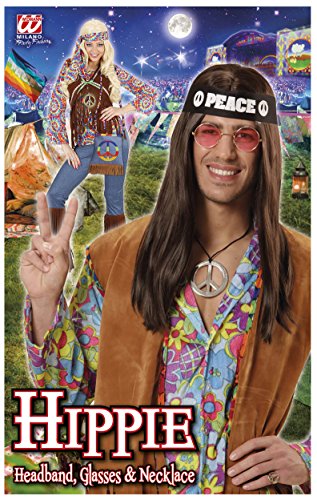 Widmann 05856 - Erwachsenenkostumset Hippie, Stirnband, Brille und Kette, Einheitsgrosse