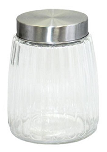 Gourmet Home Products Round Ribbed Glass Storage Container Jar With Brushed Metal Lid, 49 oz, Clear