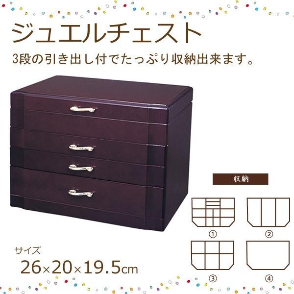 3段の引き出し付でたっぷり収納出来ます。ミラーが付いているので使いやすく便利です。 製造国:日本 素材・材質:MDF 商品サイズ:26×20×19.5cm 仕様:ミラー・リングさし付 ※メーカー直送品 ※限定数終了後は2016年5月25日入荷予定
