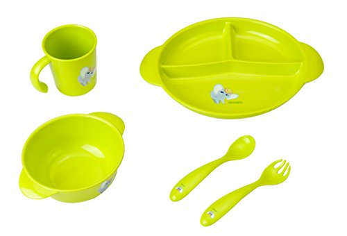 -. Title : MADE FROM CORN 5-Piece Toddler Meal Set - Reusable 100's of Times - BPA-free - Dishwasher-safe - Includes 3-Section Portion Plate, Bowl, Cup, Fork and Spoon