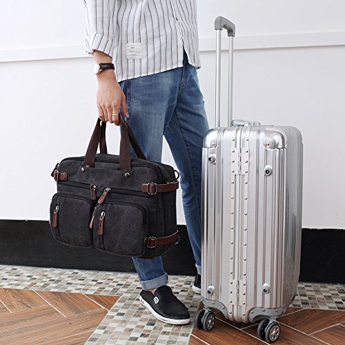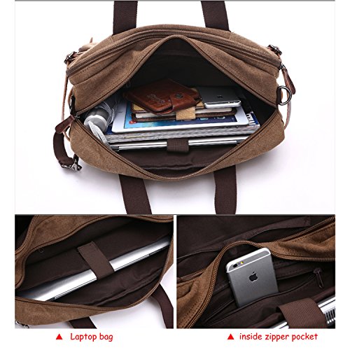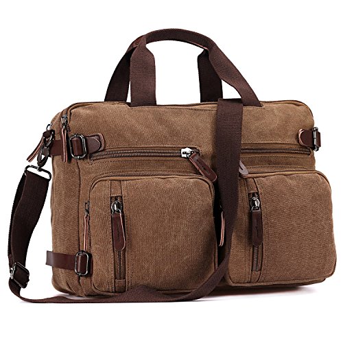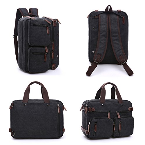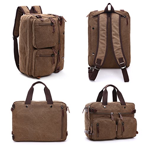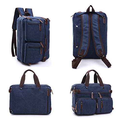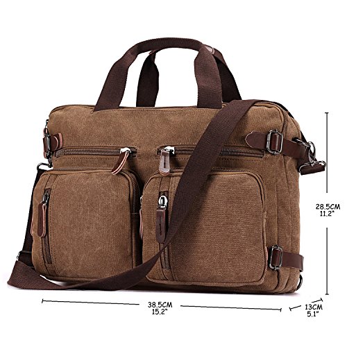 Structure ? 2 main pockets ? 1 laptop compartment ? 1 inner zip pocket, 2 inner small pockets ? 6 front zip pockets, 1 front pocket ? 2 back pockets (could hide shoulder straps) Special design ? 3 in 1 multi-purpose rucksack: Messenger bag, Laptop backpack, Handbag ? Backpack equipped external expandable adjustment buckle, use this function can be extended approx 2.5 cm of space ? This series of Backpack Messenger Bag, can only be used in Drizzle days, heavy rain can not be used, easy to be wet Characteristics ? Dimension: 15.2*5.1*11.2 inch/38.5×13×28.5 cm (L*W*H) ? Weight: 1.23 kg ? Color: Black, Blue, Brown, Gray ? Fabric: Vintage Canvas Durable Leather Washing instructions ? Do not iron; Do not bleach ? Washing separately to avoid staining ? Washing with clean water with ordinary temperatures (Hand wash only) Package includes ? 1 backpack/plastic bag (Please keep plastic package bag away from children) Notes ? There may be a small smell when you take this bag, it is new and unused. Open the package and put it in a ventilation for a few hours, then the odor will disappear ? Please be reminded that due to the lighting effect environment, brightness and contract parameters monitor etc, there could be slight differences between the color tone of the images and real objects Warranty and Service Policy ? Mupack Promise - Warranty, Exchange, Return(within 90 Days) ? You could contact us if you have any questions, and we will respond you within 24 hours ? We would like to solve problems for you and committed to provide the best customer service ever ? Please do not forget to leave 5 stars feedback if you are satisfied with our products and services 0