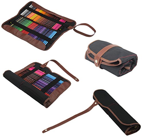 Everyday Essentials Premium Colored Pencils - Set of 72 Individual Colors with Roll up Pouch Canvas Pen Bag (72-Color)