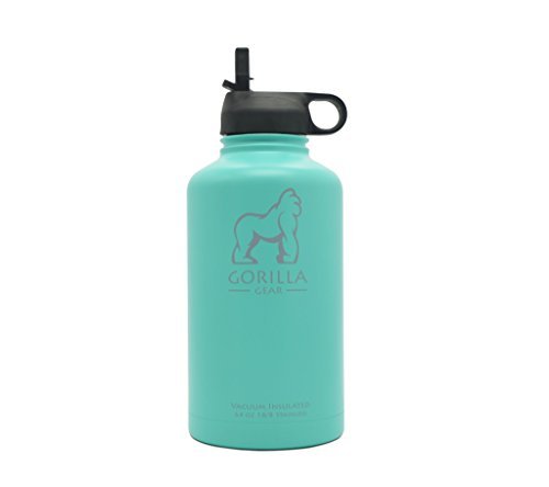 GORILLA GEAR Vacuum Insulated 64 oz Leak-Proof Water Bottle | Double Walled Stainless Steel | Extra Wide Mouth | COMES WITH 3 LIDS!!!!