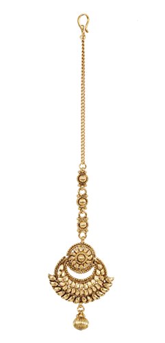 MUCHMORE Beautiful Crystal Gold Tone Maang Tikka Forehead Traditional Partywear Jewelry