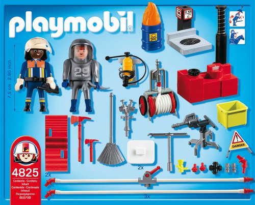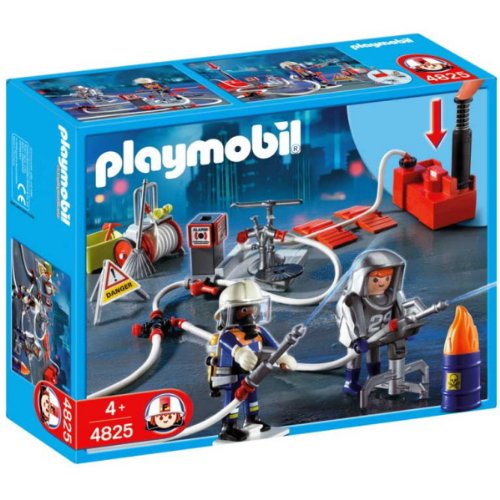 -. Binding : Toy -. Brand : PLAYMOBIL® -. Color : multi/none -. Department : Male -. EAN : 5052415642974 -. Feature : Help the firefighters put out the flames / Playmobil is the largest toy manufacturer in Germany / Figures can bend, sit, stand and turn their heads / Encourages children to explore and learn while having fun / Includes two figures, working water pump, fire hoses and many other accessories -. IsAdultProduct : 0 -. ItemPartNumber : 4825 -. Label : Playmobil -. Manufacturer : Playmobil -. Model : 4825 -. MPN : 4825 -. PackageQuantity : 1 -. PartNumber : 4825 -. ProductGroup : Toy -. ProductTypeName : TOYS_AND_GAMES -. Publisher : Playmobil -. Studio : Playmobil -. Title : PLAYMOBIL Firefighters with Water Pump -. UPC : 400941693840 -. Warranty : 30 day warranty against manufacturer defects