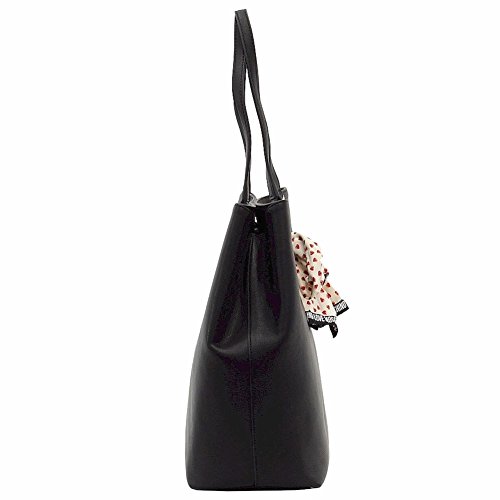 -. Brand : Love -. ClothingSize : 12.5 H x 14 L x 6 D Inches -. Color : Black -. Department : womens -. EAN : 0887349291661 -. Feature : Faux Pebbled Leather Exterior / Double Top Shoulder Straps / Metal "Love " Logo In Center Near Handles / Top Snap Closure With Center Button Strap / P.R.Int Fabric Lining -. Label : Love -. Manufacturer : Love -. MPN : JC4069PP11LG0PE16-NERO -. PartNumber : JC4069PP11LG0PE16-NERO -. ProductGroup : Apparel -. ProductTypeName : APPAREL -. Publisher : Love -. Size : 12.5 H x 14 L x 6 D Inches -. Studio : Love -. Title : Love Women's Black Pebbled Leather Tote Handbag W/Scarf -. UPC : 887349291661