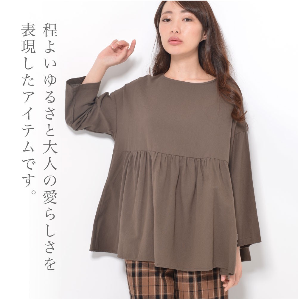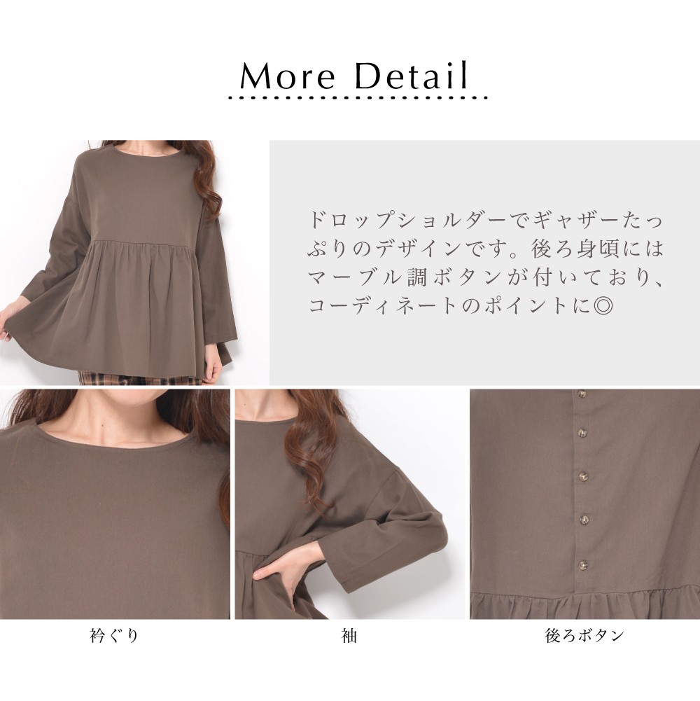ギャザーたっぷりのデザインにドロップショルダーで、程よいゆるさと大人の愛らしさを表現したアイテムです。