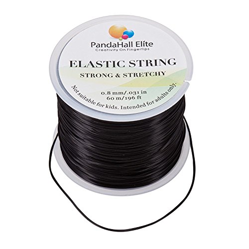 PandaHall Elite 0.8mm Elastic Stretch Polyester Threads Jewelry Bracelet Beading String Cords 60m 1 Roll Black