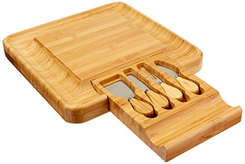 SLICE AND SERVE YOUR APPETIZERS IN STYLE: This nice bamboo chopping board comes with 3 incomparably handy cheese knives that will give you the opportunity to cut, slice and serve your appetizers or desserts effortlessly. It definitely looks great as an apple serving tray! The stainless steel flat blades and the wood handles assure unmatched longevity and a steady grip.