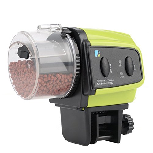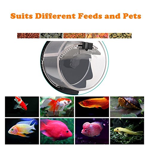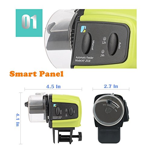 ? Notice:? ★ Low Consumption,Brand news batteries can last more than 6 months in the normal working condition.? ★ The product combines the funcions of moistureproof and crush for foods.? ★ After twist the rotor, it will rotate and stop at the position where the feeding stops.? ★ Can be Adjusted the capacity of feeding by setting the switch on the food container.? ★ Two Mode Optional,Once or twice feedings can be set within 1 day in the "Auto" Mode.Anytime's feeding can be done in the "Manual" Mode.?
