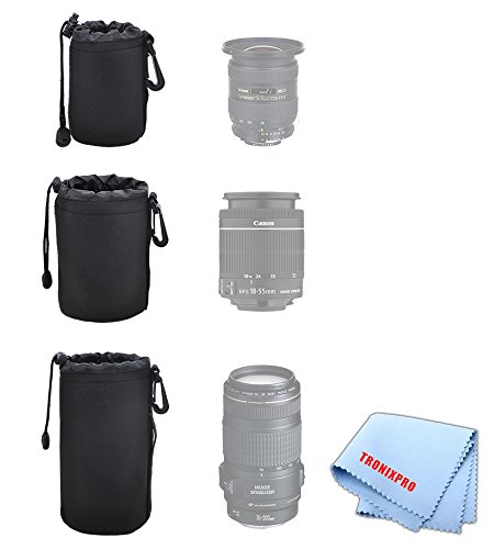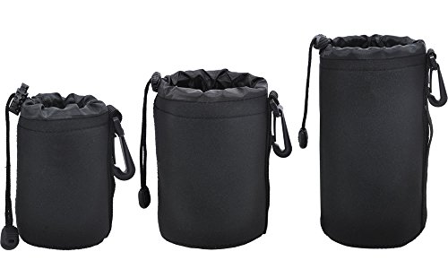 -. Title : 3 Soft Lens Pouches for Digital Camera DSLR Lenses. Small, Medium and Large for Canon, Sony, Pentax, Nikon, Olympus, Panasonic, Nikkor with Drawstring | Water Resistant