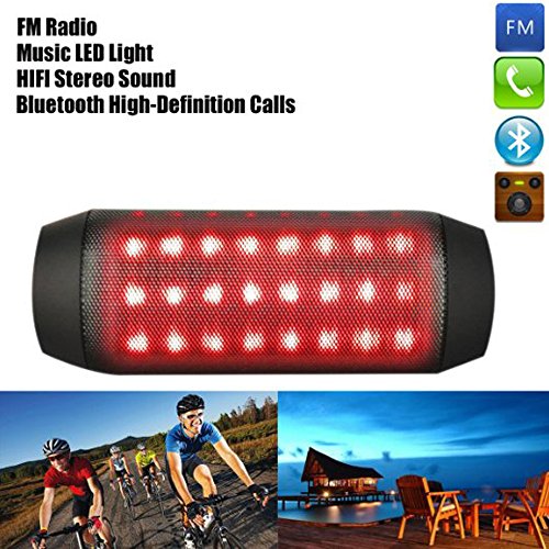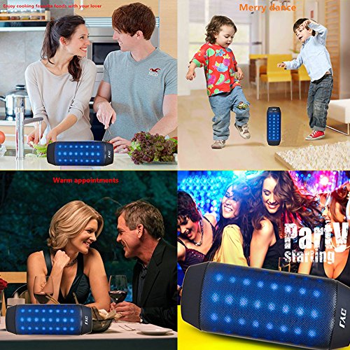 -. Feature : Cool flash led night lights (4 modes) unique designed: Good partner for your music, videos, games, gatherings, party, bar, backyard BBQ, nighlight and outdoor cycling. / Bluetooth 3.0 + EDR technology connects faster, more stable, compatible with all your Bluetooth-equipped devices(iPhone, iPad, HTC, Huawei, Samsung, Tablets, PCs, MP3 Players, Cars, Computers etc.); Outstanding connection range of up to 33 feet. Easy to pair - No code/pin needed. / Built-in mic for handsfree call. Support TF card, it could automatically play the music with a stand alone Micro SD card. FM radio is a bonus, the signals it receives depends on where it is located. Also built-in 3.5 AUX port is friendly for non-Bluetooth devices. / Built-in Li-Ion Rechargeable Battery for up to 8 hours of music play or to 3-4 hours of music play with LED light flash. Built-in high-quality dual voice coil speakers and total 6W dual powerful acoustic drivers, play a full-range, abundant stereo audio and loud sound. / Best after-sale service, 60days quality guarantee and Sound technical advice within 24 hours.