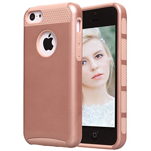 iPhone 5C Case, AUMI Cute Shockproof Armor Slim Denfender Case for iPhone 5C (Rose Gold+Grey)