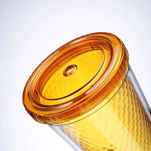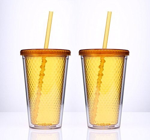 -. Feature : Beehive design cups with reusable straw in delicious honey color. / Double wall insulated to prevent condensation or 'Sweating'. Great for Bar-B-Q's, home use, picnics, office, etc / Twist on lid, with rubber gasket seal / Rinse & Reuse | Large Opening for Easy Filling and Cleaning. / Fits most car cup holders. BPA Free