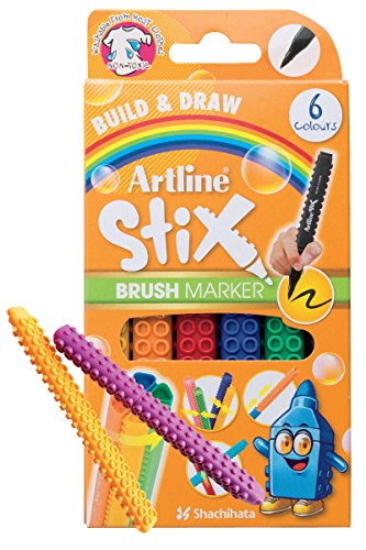 Artline Stix Brush Markers 6 Assorted Color Set- Hand-letting Pens- Calligraphy markers- Non Toxic Artline Stix Build and Draw Connecting Markers