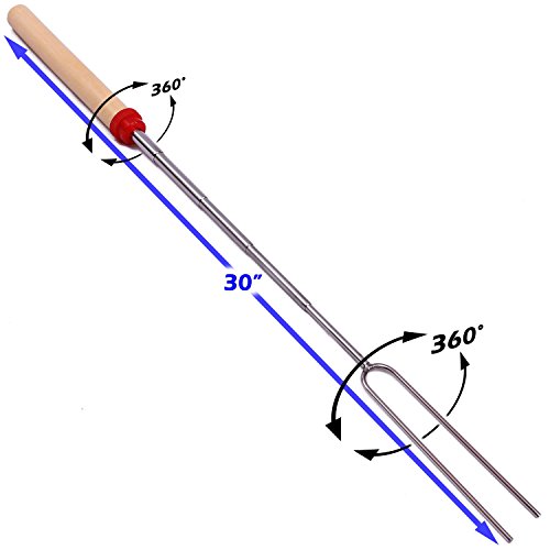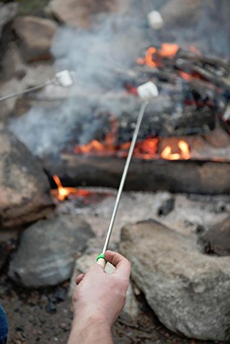 EXPERT APPROVED SAFE FOR CHILDREN: Experts recommend our 30 inch rotating and telescoping forks and advise parents not to purchase common 22 inch marshmallow roasting sticks that are not extendable in order to keep children a safe distance from any patio fire pit, backyard fire pit, bonfire pit, or campfire | Non-sharp prongs make them perfect for use around children. NO MORE FIGHTING: 8 multi colored BPA FREE handle tips make identification easy when kids join in the fun